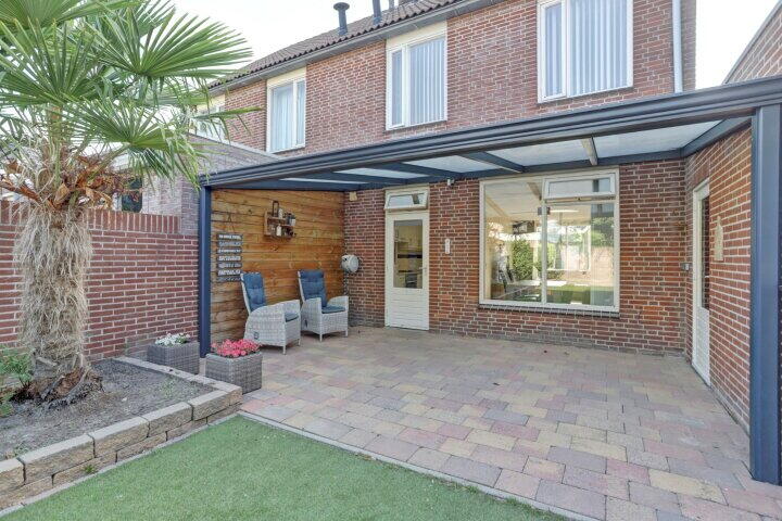 De woning heeft een voor- en achtertuin met aangrenzende garage. Achter de garage is er een wasruimte aanwezig. Ook is er een fijne overkapping geplaatst tegen de achtergevel van de woning.